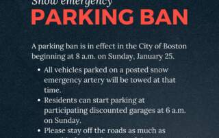 Residents are encouraged to stay home. If travel is necessary, please use public transportation. Mayor Michelle Wu Saturday declared a snow emergency starting at 8 a.m. on Sunday, Jan. 25, 2026 ahead of the forecasted winter storm. The highest rate of snowfall will take place from 2 p.m. Sunday to 3 a.m. Monday. Residents are advised that a snow emergency/parking [...]
